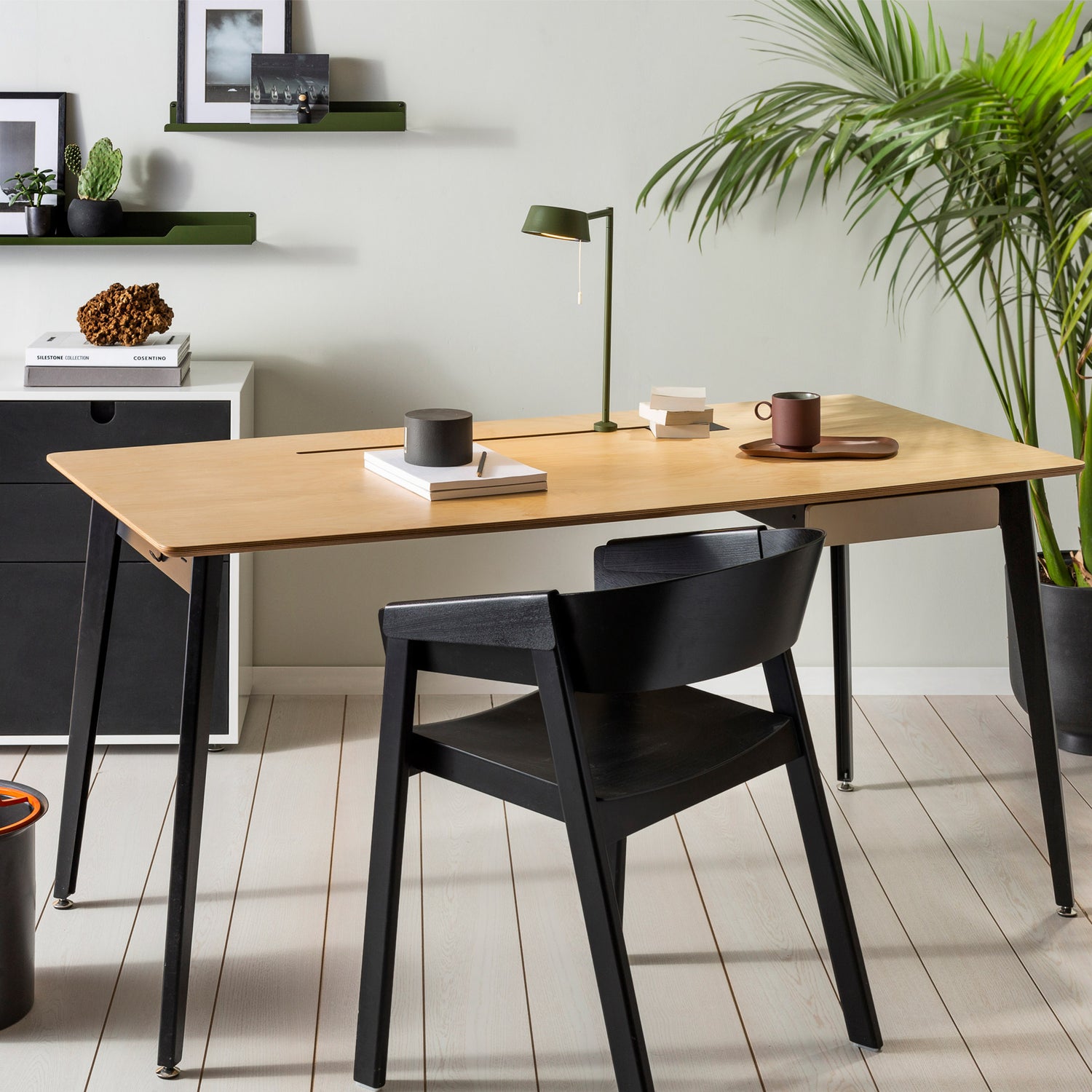 פינת העבודה המוצגת בתמונה מתאפיינת בחומרים איכותיים ובשילובי צבע נועזים והיא ניתנת להתאמה אישית.